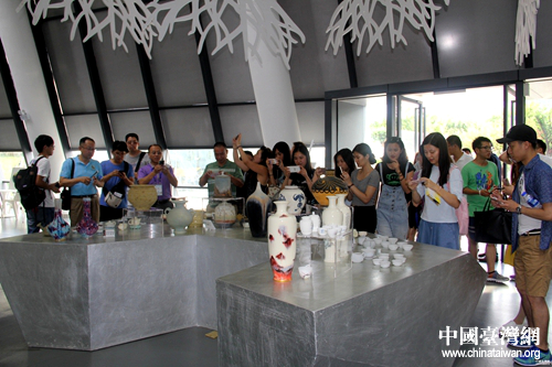 兩岸大學生參觀位于旺山村內(nèi)的美食文化創(chuàng)意展覽。(中國臺灣網(wǎng)記者 李杰 攝)
