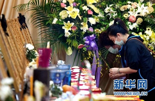 7月25日,大陸赴臺(tái)旅行團(tuán)嚴(yán)重車禍遇難者“頭七”法會(huì)在桃園中壢殯儀館懷源廳舉行。遇難者家屬分別到遇難者靈前上香、鞠躬,跟隨法師誦經(jīng)悼念親人。 新華社記者 宋振平 攝