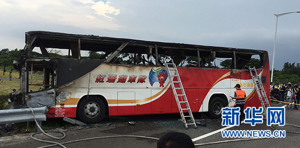 2016年7月19日,臺(tái)灣游覽車(chē)起火造成26人罹難,包括24名大陸游客。這是7月19日拍攝的事故車(chē)輛。新華社發(fā)