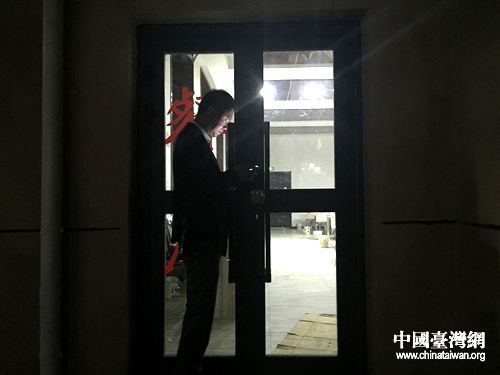 由于餐廳還沒開門,工作人員敲餐廳的門。餐廳這么早開門,這也是茶卡鹽湖景區(qū)旅游公司對記者們特殊的照顧。(中國臺灣網(wǎng) 蕪?fù)?攝)