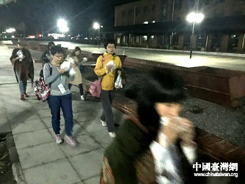 女記者們顧不上淑女形象,邊走邊吃起來。在頭天夜里記者們?nèi)ヅ牟杩ㄐ强諘r(shí),有人夜里2點(diǎn)在微信群里發(fā)信息“餓了,誰有方便面!”記者們是真餓了。(中國臺灣網(wǎng) 蕪?fù)?攝)