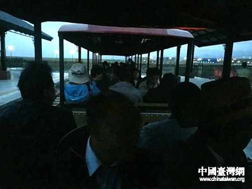 記者們上了景區(qū)專門為記者安排的小火車“專列”。由于青海的海西州時(shí)差比北京晚91分鐘,雖然5點(diǎn)多了,但天還是一片黑。(中國臺灣網(wǎng) 蕪?fù)?攝)