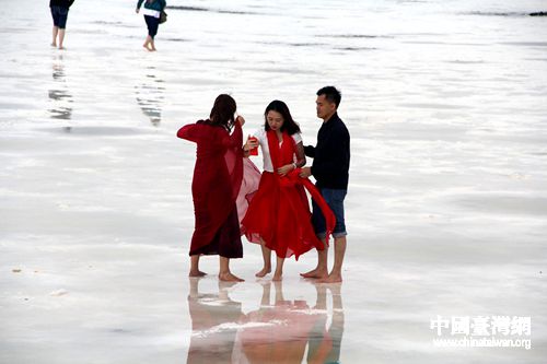 浩瀚的鹽湖。但因?yàn)橛酗L(fēng)而沒拍出理想的效果。大家不氣餒,爭取再上岸拍些美圖。(中國臺灣網(wǎng) 蕪?fù)?攝)