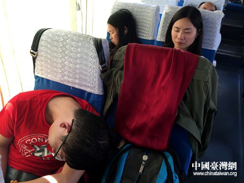 早晨的拍攝任務(wù)結(jié)束了,記者們匆匆坐上車奔赴下一個(gè)地點(diǎn)。路上還有約310公里,要走4個(gè)多小時(shí)的行程。記者們終于抗不住,在車上睡著了。(中國臺灣網(wǎng) 蕪?fù)?攝)