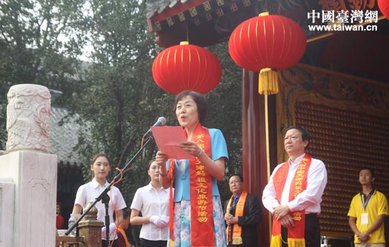 國務(wù)院臺辦交流局局長黃文濤宣讀《關(guān)于同意在天津天后宮設(shè)立海峽兩岸交流基地的批復(fù)》。(中國臺灣網(wǎng) 吳曉寒 攝)
