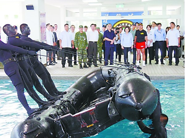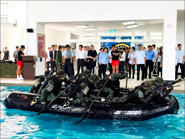 據(jù)臺(tái)灣《聯(lián)合報(bào)》報(bào)道,蔡英文10日到金門“勞軍”,由于這是蔡英文上任后首次到金門,行程備受矚目。當(dāng)天上午,她前往陸軍航特部兩棲偵察營,觀看部隊(duì)的操舟戰(zhàn)技及水域戰(zhàn)技綜合演練。不過讓人吃驚的是,這次竟然沒有按慣例在灘頭演練技能,而是選擇在波瀾不驚的游泳池中演練翻舟覆舟等科目。有網(wǎng)友嘲笑稱,“在游泳池也能練出特種兵,長見識(shí)了”。