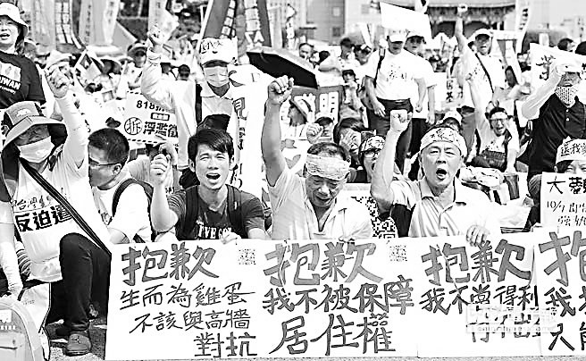 25日,“反迫遷團(tuán)體”抗議民進(jìn)黨不保障居住權(quán)。