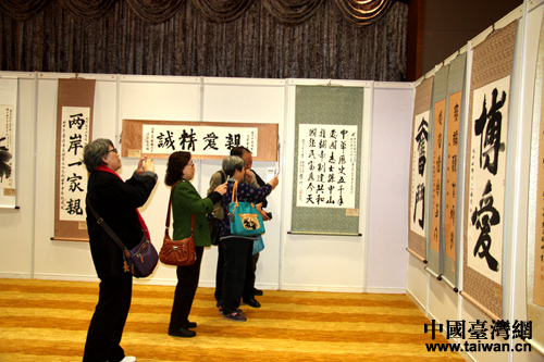 與會(huì)嘉賓參觀書畫展。(中國(guó)臺(tái)灣網(wǎng) 李杰 攝)