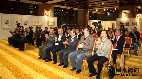 臺(tái)灣嘉賓參觀書畫展合影留念。(中國(guó)臺(tái)灣網(wǎng) 李杰 攝)