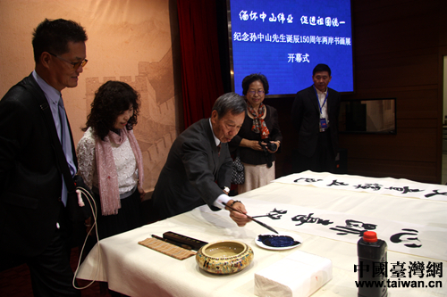 緬懷中山偉業(yè) 促進(jìn)祖國(guó)統(tǒng)一”——紀(jì)念孫中山先生誕辰150周年兩岸書畫展在北京開幕。(中國(guó)臺(tái)灣網(wǎng) 李杰 攝)