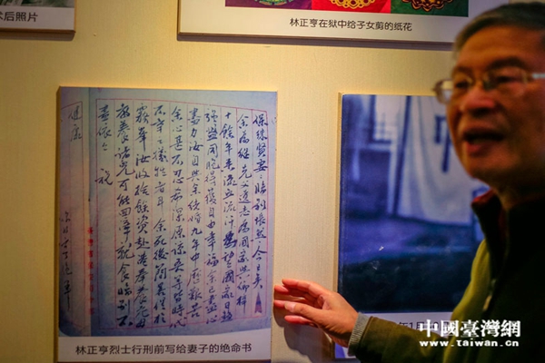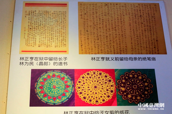 林正亨烈士親筆書信、親手剪的紙花。(中國(guó)臺(tái)灣網(wǎng) 郭曉康 攝)