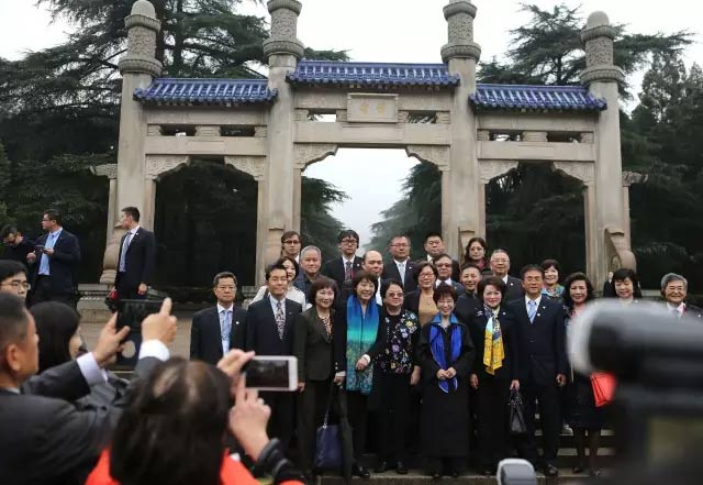 洪秀柱一行于30日晚間抵達(dá)南京。10月31日上午,綿綿秋雨中,洪秀柱率領(lǐng)中國國民黨大陸訪問團(tuán)抵達(dá)南京中山陵拜謁,向?qū)O中山先生致敬。