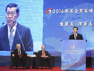 峰會臺灣方面理事長蕭萬長在致辭時表示,當前全球經(jīng)濟和兩岸關(guān)系發(fā)展面臨若干變數(shù),兩岸企業(yè)合作面對的問題也更為復(fù)雜,亟須以新的思維和新的做法,營造企業(yè)合作的永續(xù)環(huán)境,規(guī)劃更為具體的實踐藍圖,以促進兩岸產(chǎn)業(yè)融合。蕭萬長強調(diào),在當前兩岸關(guān)系出現(xiàn)波動的情況下,應(yīng)更加重視民間的合作關(guān)系,并充分利用峰會的平臺,維持兩岸經(jīng)貿(mào)往來及雙方密切合作,發(fā)揮維護兩岸和平發(fā)展大局的積極作用。