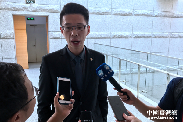全國(guó)臺(tái)企聯(lián)副會(huì)長(zhǎng)林子凱接受媒體采訪。(中國(guó)臺(tái)灣網(wǎng) 陳文韜 攝)