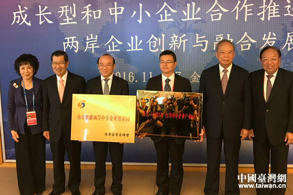 兩岸企業(yè)家峰會(huì)為重慶(大渡口)臺(tái)灣中小企業(yè)產(chǎn)業(yè)園、南京麒麟兩岸中小企業(yè)創(chuàng)新園授牌。(中國(guó)臺(tái)灣網(wǎng) 陳文韜 攝)