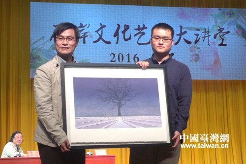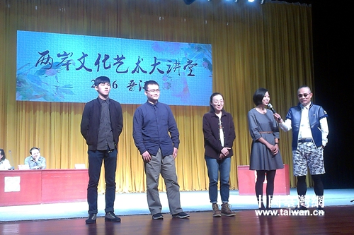 中國臺(tái)灣網(wǎng)11月9日晉江訊 11月9日上午,“兩岸大學(xué)生優(yōu)秀美術(shù)作品展暨藝術(shù)大講堂”首展在晉江博物館開展,展覽以“原創(chuàng)最美”為主題,從清華大學(xué)美術(shù)學(xué)院、集美大學(xué)美術(shù)學(xué)院、臺(tái)灣師范大學(xué)美術(shù)學(xué)系、臺(tái)灣藝術(shù)大學(xué)等兩岸著名藝術(shù)院校選送的學(xué)生美術(shù)作品中,精選出60余幅優(yōu)秀作品展出。“藝術(shù)講堂之晉江講堂”同日下午在晉江戲劇中心開講,來自兩岸院校的教授及學(xué)生代表以及活動(dòng)主協(xié)辦方相關(guān)人員百余人與會(huì)。此次講堂導(dǎo)師由福建省美術(shù)家協(xié)會(huì)秘書長趙勝利、林派傳人草山大師、臺(tái)灣師范大學(xué)美術(shù)學(xué)院黃進(jìn)龍教授擔(dān)當(dāng)。