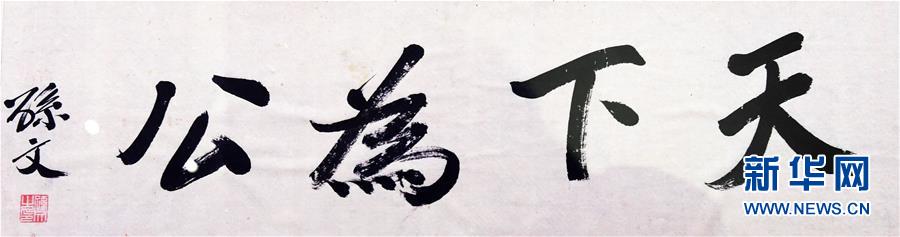 臺(tái)灣島內(nèi)珍藏史料中的孫中山這是中國國民黨黨史館的館藏文物《天下為公》真跡(11月9日攝)。今年11月12日是孫中山先生誕辰150周年紀(jì)念日。在祖國寶島臺(tái)灣珍藏著許多彌足珍貴的孫中山文物,而保存最多、最全、最有系統(tǒng)的無疑是中國國民黨黨史館。新華社記者朱祥攝