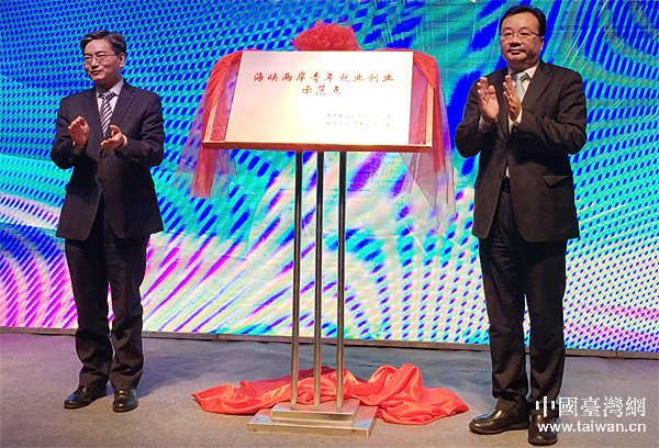 “海峽兩岸青年就業(yè)創(chuàng)業(yè)示范點(diǎn)”揭牌儀式。(中國(guó)臺(tái)灣網(wǎng) 馬萌 攝)