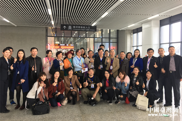 媒體團(tuán)在磁浮快線高鐵站合影(中國臺(tái)灣網(wǎng) 袁楚 攝)