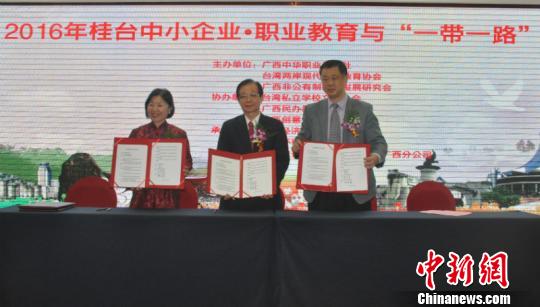 論壇中,廣西民辦教育協(xié)會(huì)與臺(tái)灣私立學(xué)校文教協(xié)會(huì)、臺(tái)灣環(huán)球科技大學(xué)等簽署合作協(xié)議,決定共同培訓(xùn)職業(yè)技術(shù)人才,促進(jìn)兩岸中小企業(yè)合作交流與國(guó)際化。(記者 林浩)