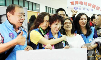 洪秀柱到臺中出席募款晚會,與挺柱鐵粉互動。不僅她本人需要挺住,整個國民黨亦如此!×止嚷z