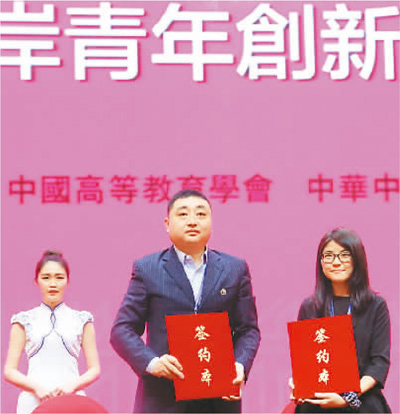 臺灣藝術(shù)大學學生施乃文(右)與大陸企業(yè)簽約,她的作品將進入大陸市場。