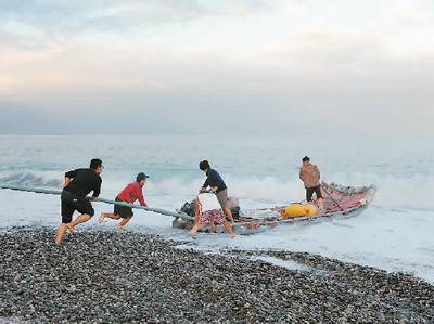 花蓮七星潭漁人出海場景。張盼攝
