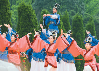 圖為紹興祭禹由66人獻祭舞的《大禹頌》。