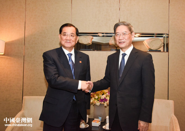 張志軍會(huì)見中國國民黨前主席連戰(zhàn)。(陜西省臺(tái)辦供圖)