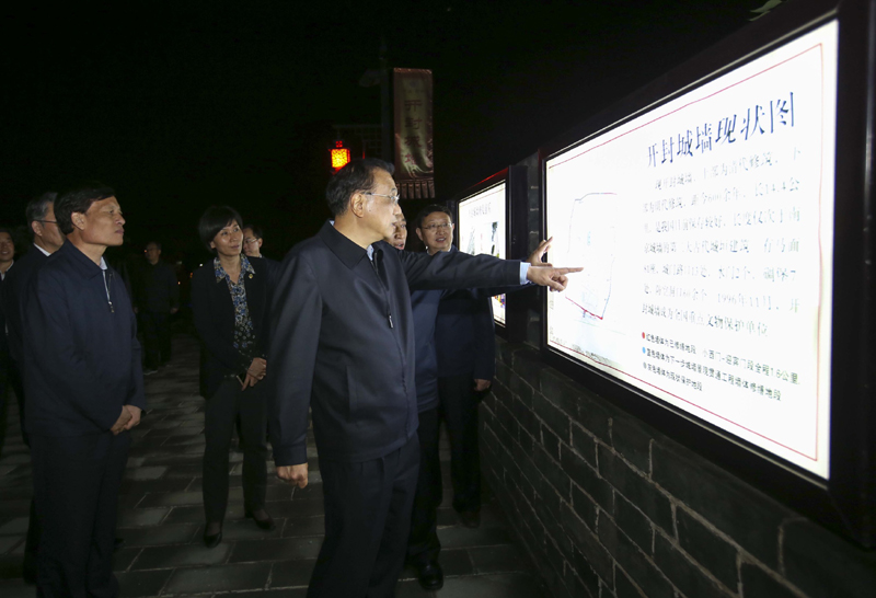 【李克強(qiáng)為何夜登開封城墻?】李克強(qiáng)8日晚在夜色中登上開封城墻。始建于唐代的開封城墻全長(zhǎng)14.4公里,是中國(guó)現(xiàn)存第二大古代城垣建筑,經(jīng)過(guò)多年逐段修繕,已成為風(fēng)景優(yōu)美的綠地公園?偫砗褪忻駛儫崆榻徽,還饒有興趣走進(jìn)幾家文創(chuàng)小店。他說(shuō),要保護(hù)好跨越千年的開封城墻,守住文明積淀的古都根脈。