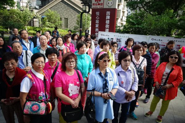臺灣新北市宗親文化暨社區(qū)發(fā)展交流團參觀鎮(zhèn)江市京口區(qū)四牌樓街道虹橋社區(qū)。(鎮(zhèn)江市臺辦 章邦勇 攝)