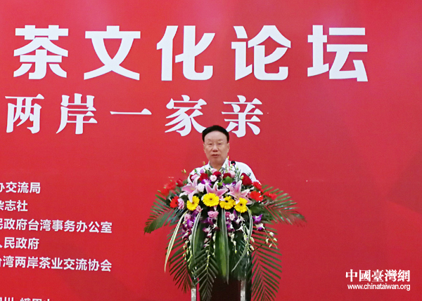 海峽兩岸關(guān)系協(xié)會副會長李亞飛出席第五屆兩岸茶文化論壇開幕式并致辭。(《兩岸關(guān)系》雜志社供圖)