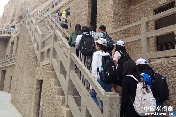 營員們參觀敦煌莫高窟(中國臺灣網(wǎng) 張亞靜 攝)