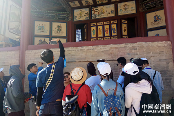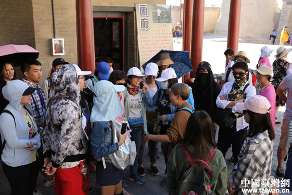 兩岸青年聽導(dǎo)游講述嘉峪關(guān)城樓的歷史故事。(中國臺灣網(wǎng) 張亞靜 攝)