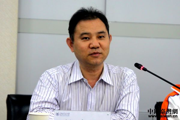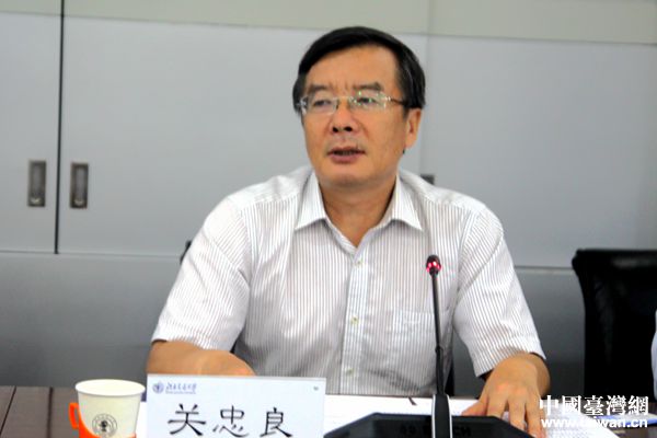 北京交通大學(xué)副校長關(guān)忠良向來訪的臺灣大學(xué)生介紹學(xué)校概況。(中國臺灣網(wǎng) 李杰 攝)