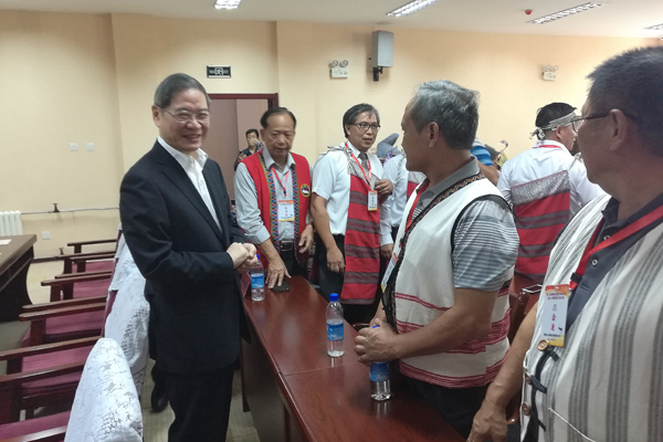 中共中央臺(tái)辦、國務(wù)院臺(tái)辦主任張志軍與臺(tái)灣少數(shù)民族代表互動(dòng)。(中國臺(tái)灣網(wǎng)發(fā))