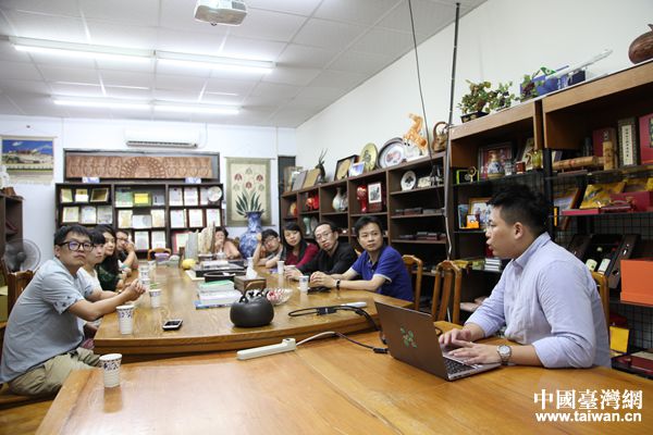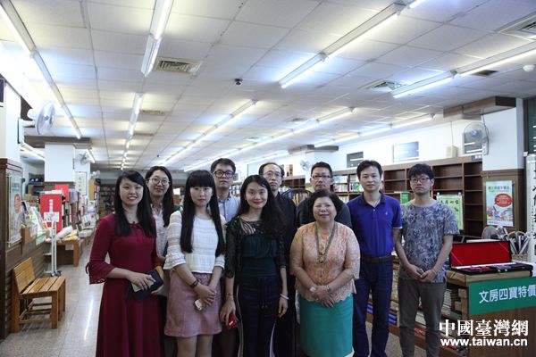 兩岸文創(chuàng)產(chǎn)業(yè)交流團(tuán)團(tuán)員與蘇清足女士合影。(中國(guó)臺(tái)灣網(wǎng) 袁楚 攝)