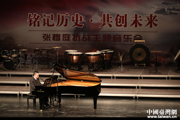音樂會下半場,臺灣青年音樂家張穆庭以鋼琴獨奏《義勇軍進行曲》、《松花江上》、《雨夜花+望春風》等曲目,把現(xiàn)場觀眾帶回抗戰(zhàn)年代。隨后,張穆庭鋼琴彈唱了《1937南京大屠殺紀念單曲》、《一帶一路》、《一個中國》等原創(chuàng)曲目,將音樂會推向了又一個高潮,現(xiàn)場觀眾報以熱烈的掌聲。