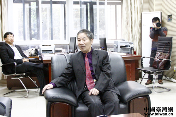 在福州市臺胞權益保障法官工作室,臺商鄭德汐向記者介紹情況。(中國臺灣網(wǎng) 王怡然 攝)