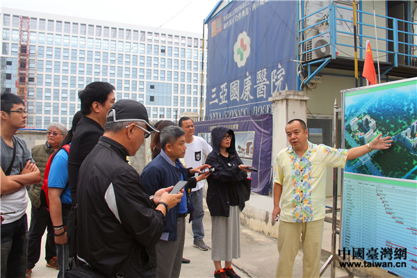 三亞國(guó)康醫(yī)院負(fù)責(zé)人向兩岸網(wǎng)絡(luò)媒體人介紹項(xiàng)目整體情況。(中國(guó)臺(tái)灣網(wǎng) 吳曉寒 攝)