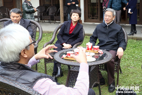 12月26日,中共中央臺辦、國務(wù)院臺辦主任張志軍一行走訪調(diào)研四川新津臺灣農(nóng)民創(chuàng)業(yè)園,與園區(qū)臺企負責人座談交流。(中國臺灣網(wǎng) 王怡然 攝)