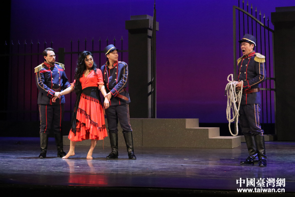 中國臺灣網(wǎng)1月8日訊 2018年1月7日晚,臺中市標志性建筑臺中市歌劇院外人聲鼎沸,燈光璀璨。這座2017年被評為“臺灣建筑特別獎”的歌劇院迎來了一場特殊精彩的演出,由寧波交響樂團和臺灣創(chuàng)世歌劇團聯(lián)合制作,中央音樂學院院長俞峰擔任藝術(shù)指導,中央音樂學院指揮系教授陳琳執(zhí)棒,十大女中音歌唱家、中國音樂學院附中青年教師陳冠馥和臺灣著名歌唱家翁若佩領銜主演的全本法語歌劇《卡門》在這里隆重上演。