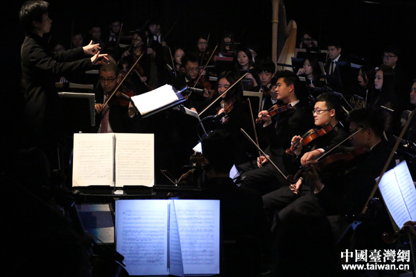 2018年1月7日晚,臺中市標志性建筑臺中市歌劇院外人聲鼎沸,燈光璀璨。這座2017年被評為“臺灣建筑特別獎”的歌劇院迎來了一場特殊精彩的演出,由寧波交響樂團和臺灣創(chuàng)世歌劇團聯(lián)合制作,中央音樂學院院長俞峰擔任藝術(shù)指導,中央音樂學院指揮系教授陳琳執(zhí)棒,中國音樂學院附中青年教師陳冠馥和臺灣著名歌唱家翁若佩領銜主演的全本法語歌劇《卡門》在這里隆重上演。(中國臺灣網(wǎng)發(fā) 寧波交響樂團供圖)