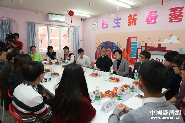 隨后,張志軍來到“拾光小屋”與臺灣師生座談。張志軍說,中華民族傳統(tǒng)佳節(jié)春節(jié)就快到了,每年國臺辦與海協(xié)會(huì)有關(guān)負(fù)責(zé)人都會(huì)到各地慰問臺胞!拔医裉斓竭@里是第一站,也希望通過你們向你們的家人表達(dá)節(jié)日的問候。”
