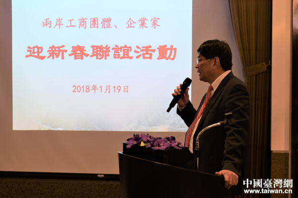 他指出,自2009年6月臺灣開放陸資赴臺投資以來,大陸在臺企業(yè)為促進兩岸經(jīng)濟合作及臺灣經(jīng)濟發(fā)展作出了積極貢獻。而在促進兩岸經(jīng)貿(mào)往來中,臺灣工商界的朋友也扮演了重要推手的角色,發(fā)揮了主渠道作用。期盼在新的一年里,兩岸業(yè)界更緊密合作,深化經(jīng)貿(mào)往來,深化民間交流,更好地為兩岸產(chǎn)業(yè)合作、企業(yè)發(fā)展服務(wù),積極為臺灣同胞分享大陸發(fā)展機遇和成果創(chuàng)造條件。