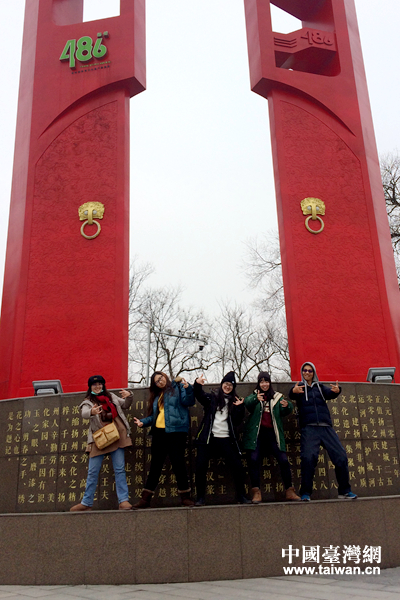 兩岸青年在東關(guān)街合影留念。(中國(guó)臺(tái)灣網(wǎng) 王亞靜 攝)
