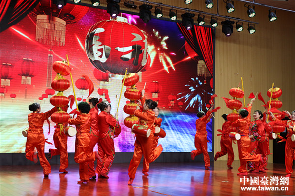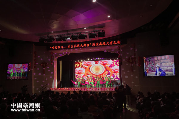 北京海淀區(qū)蘇家坨鎮(zhèn)和高雄市恒春鎮(zhèn)進(jìn)行視頻連線,歡度元宵。圖為蘇家坨鎮(zhèn)表演開(kāi)場(chǎng)舞蹈《張燈結(jié)彩》,“點(diǎn)燃”兩地現(xiàn)場(chǎng)氛圍。(中國(guó)臺(tái)灣網(wǎng) 郜利敏 攝)