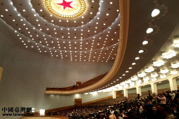 3月3日,在人民大會(huì)堂拍攝的記者們。(中國(guó)臺(tái)灣網(wǎng) 盧佳靜 攝)