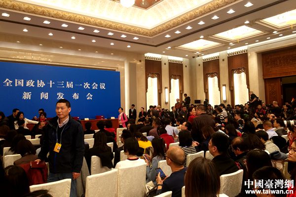 3月2日,全國(guó)政協(xié)十三屆一次會(huì)議新聞發(fā)布會(huì)上。(中國(guó)臺(tái)灣網(wǎng) 盧佳靜 攝)