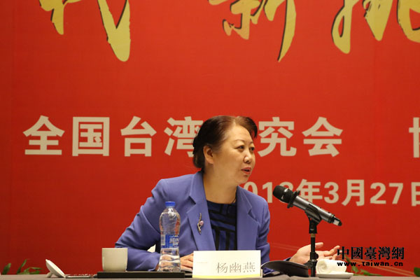 全國(guó)臺(tái)灣研究會(huì)常務(wù)副秘書長(zhǎng)楊幽燕主持論壇。(中國(guó)臺(tái)灣網(wǎng) 李杰 攝)